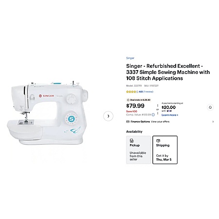 Singer - Refurbished Excellent - 3337 Simple Sewing Machine with 108 Stitch Applications $79.99 Bestbuy.com
