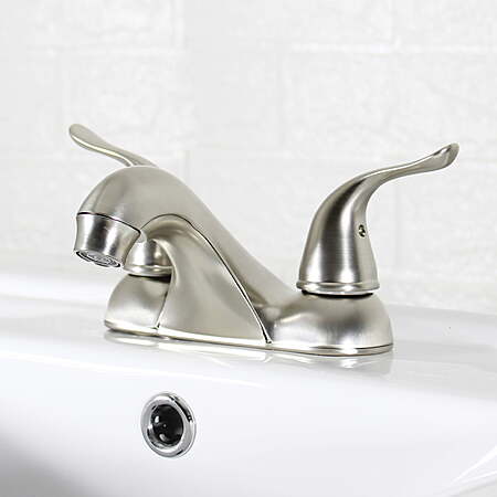 4" Mainstays Centerset Bathroom Faucet with Push Pop-up, Dual Handle (Satin Nickel) $39.96 + Free Shipping