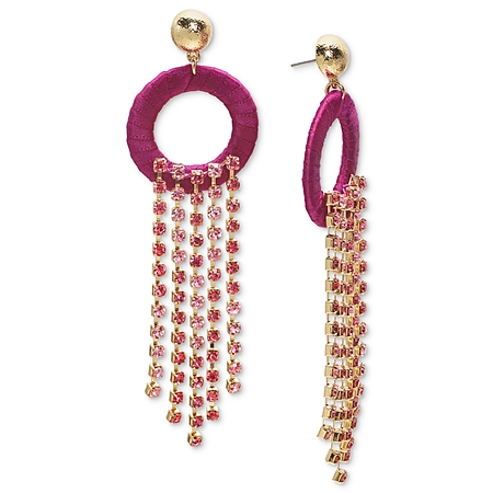 I.n.c. International Concepts Gold-Tone Ribbon-Wrapped Circle & Color Crystal Fringe Statement Earrings, Created for Macy's - Pink $7.86