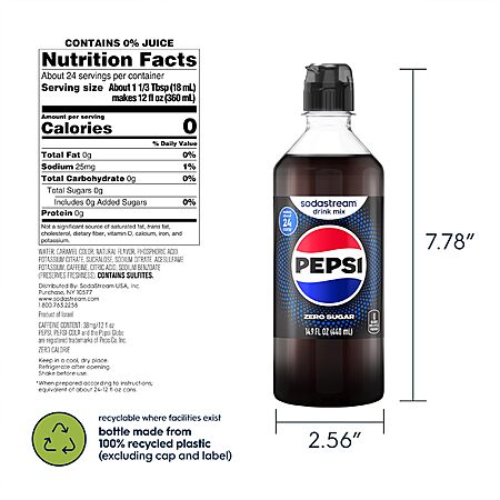 Features:- Includes: (4) 440ml SodaStream Pepsi Zero Sugar, Drink Mix. 14.9 Fl Oz (Pack of 4)