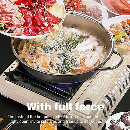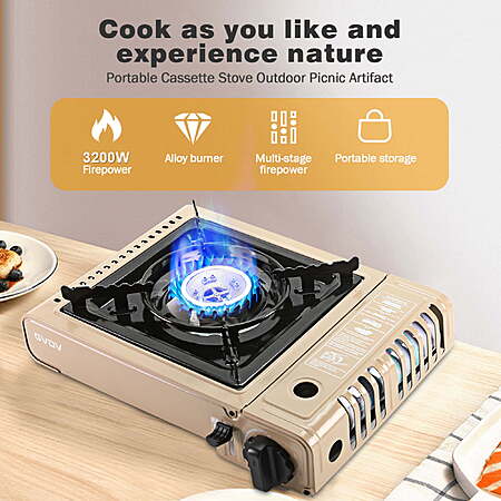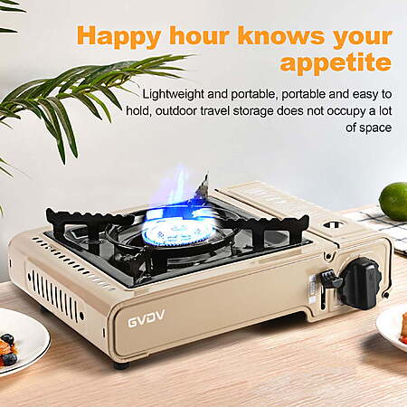 | Product Description: | Our portable outdoor butane gas stove uses conventional 8 oz size butane canisters, and is safe and easy. Its generous heat output of 8530 BTU for a perfect balance of output power for every type of cooking. Easy to cleanup enamel surface and dripping tray. Ideal for outdoors for overflow, when your barbecue is in use. Perfect for camping and other occasions both indoor and outdoor. More efficient cooking with less fuel. Adjustable burner gives you precise temperature control. Butane canister not included. We upgraded the carrying case to be more durable. PORTABLE: Lightweight and compact; included carrying case makes it easy to bring to the campsite, picnic, roadside, and more PRECISE TEMPERATURE CONTROL: Single adjustable burner for precise temperature control EASY TO CLEAN: Porcelain-coated grate is removable for quick cleanup; rustproof aluminum burner LARGE BASE: For stable and easy stirring MATCHLESS LIGHTING: Instastart ignition for automatic, matchless lighting; 8,530 total BTUs of cooking power WIND PROTECTION: Wind baffle helps shield flame from wind SIZE: Fits one 10-inch pan BURN TIME: Up to 1.25 hours on high on one 8.8 oz butane gas cylinder (sold separately) |