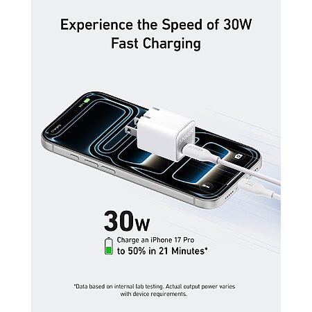 $9.99: Anker Nano USB C Charger Block, 30W PIQ 3.0 Foldable iPhone Charger Fast Charging for iPhone 17/16 Series, Galaxy, iPad, Compatible with MagSafe, Aurora White