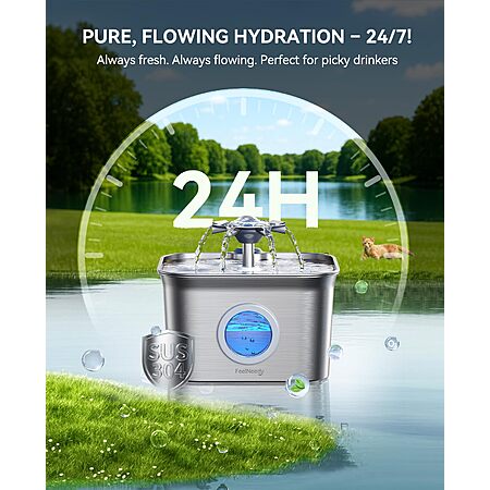 2.8L FEELNEEDY Stainless Steel Dishwasher-Safe Pet Water Fountain w/ 3 Filters on sale for