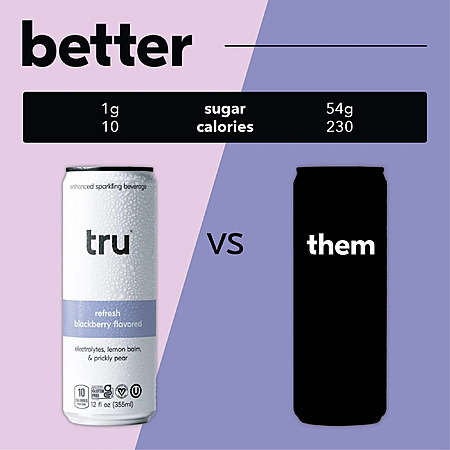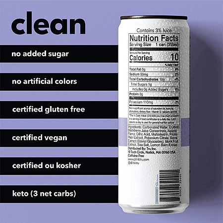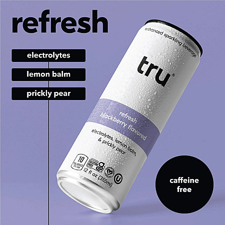 Walmart.com[walmart.com] has T.R.U. Tru Refresh Sparkling Water, Prickly Pear, Lemon Balm & Blackberry, Monk Fruit Sweetened (& Other Flavors), 12 fl oz, 12 Pack on sale for $19.99.
