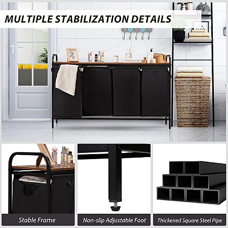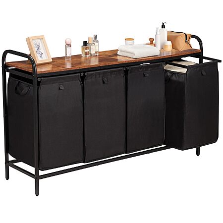 Azaeahom 4 Section Laundry Hamper w/ Shelf & 4 Pull-Out Removable Bags (Brown or Black) on sale for $75.99 - 50% off when you enter the coupon code