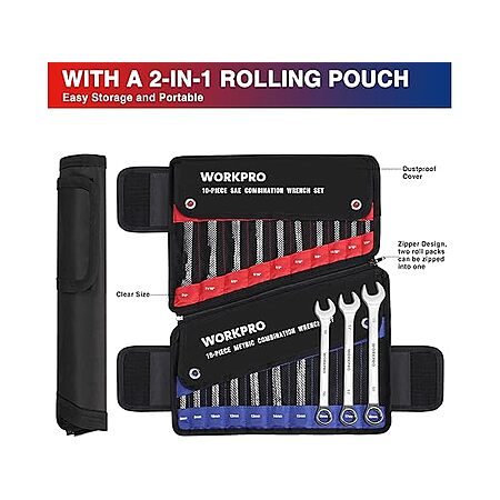 Woot! has WORKPRO 20-piece Combination Wrench Set Blue on sale for $20.
