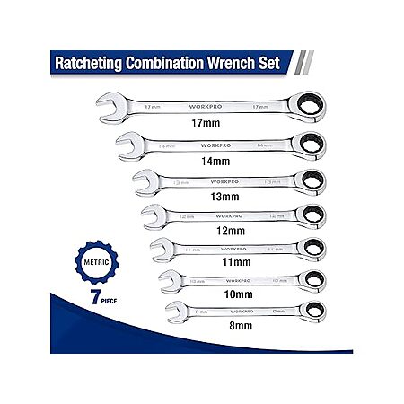 WORKPRO 7-Piece Ratcheting Combination Wrench Set - $14.99 + free ship w/ Prime