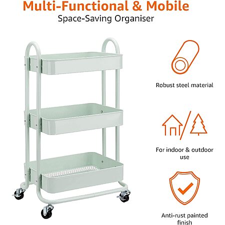 About this item- 3-tier rolling metal utility or kitchen cart for multifunctional use