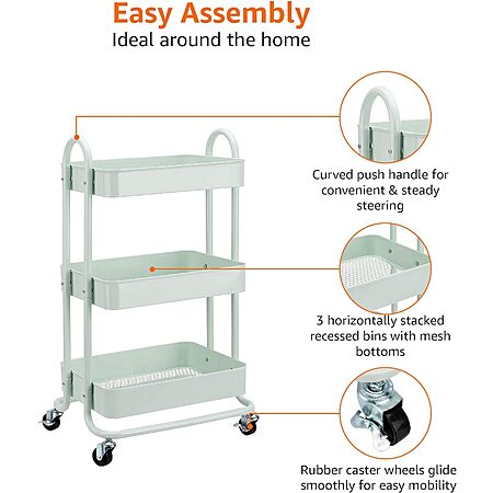 Amazon Basics 3-Tier Metal Rolling Utility or Kitchen Cart - Mint Green