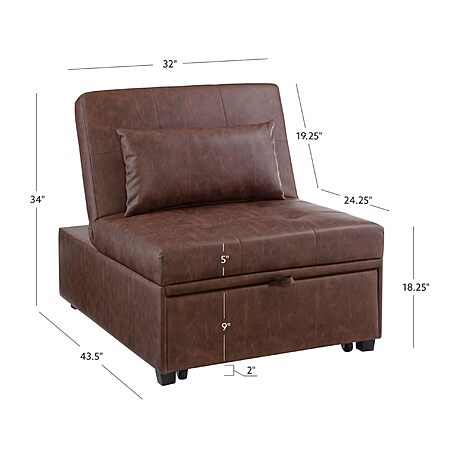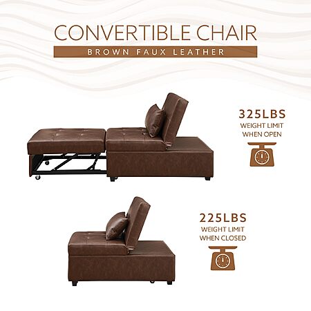 - Multiple configurations enable the piece to fit the evolving needs of your living space. Supports up to 325 lbs. when open as a bed and 225lbs. as a chair.