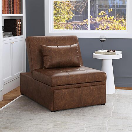 Amazon.com has Powell Marnie Brown Faux Leather Convertible Sofa Bed with Matching Roll Pillow on sale for $162.39. Shipping is Free.