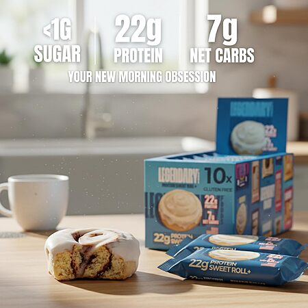 Model: Legendary Foods 22g Protein Cinnamon Roll - Premium High Protien Bars, Low Carb Meal Replacement Snack, Low Glycemic Index, Gluten Free Snacks - Sweet Zero Sugar, Keto and Diabetic Friendly 10-Pack