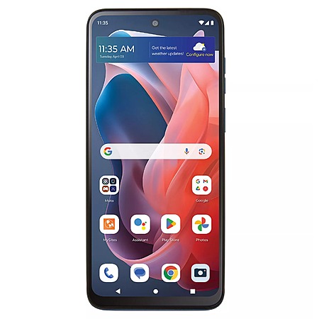 Includes Moto G Play 2024 4G smartphone with USB charging cable, SIM tool, one year of service/1,500 minutes/1,500 texts/1.5GB data; handset, car charger, case, 5000 mAh power bank, and voucher