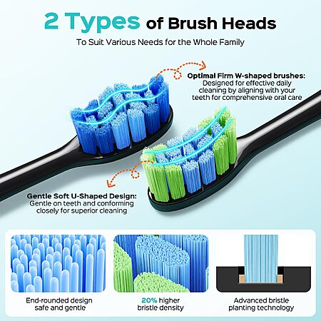 Model: COSLUS Sonic Electric Toothbrush for Adults: 3 Intensities & 5 Modes Gum-Friendly for Deep Cleaning & Whitening - 2 Types of Heads for Family, Sensitive Teeth, Braces, Travel & Home Use, Black