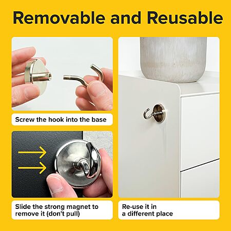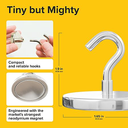 4-Pack Heavy Duty Neodymium Magnetic Hooks (130lbs) $8 & More + FS w/ Prime or orders $35+