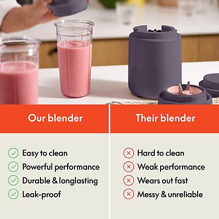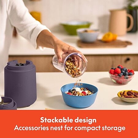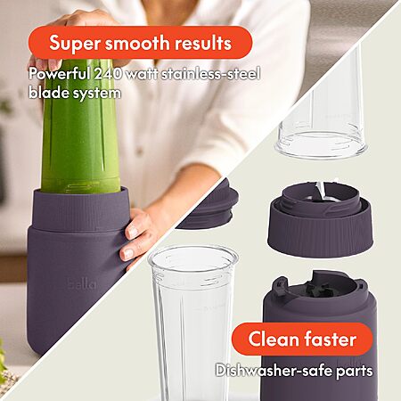 Bella 6 Pcs Portable Rocket Blender, Juicer & Smoothie Maker, BPA Free Dishwasher Safe, Stainless Steel Blade, Cord Wrap, 240 Watt Motor, Plum $17.31