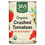 Amazon[amazon.com] has 15-Oz 365 by Whole Foods Market Organic Crushed Tomatoes (No Salt Added) for $1.30 - 5% when you check out via Subscribe & Save = $1.23. Shipping is free with Prime or on $35+ orders.