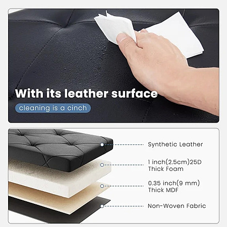 【Sufficient Storage Space】 This ottoman with storage, measuring 15"D x 15"H x 43"W, is able to provide you with ample storage space. By inserting the center divider, you can store different items on two sides such as bedding, clothes, toys, books, snacks, etc. The divider also provides stronger support for the top.