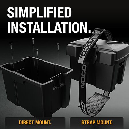 - Simplified Installation - Installing our battery boxes has never been easier. Utilize the pre-drilled internal pilot holes for direct mounting without a battery strap. Or the all-new strap mount system for more rugged and demanding installations.