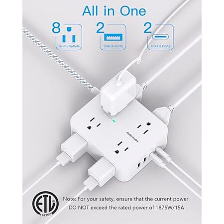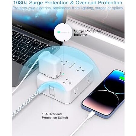 $9.98 | HANYCONY 8-Outlet Surge Protector w/ 4 USB Ports, 5' Braided Cord & Flat Plug at Amazon