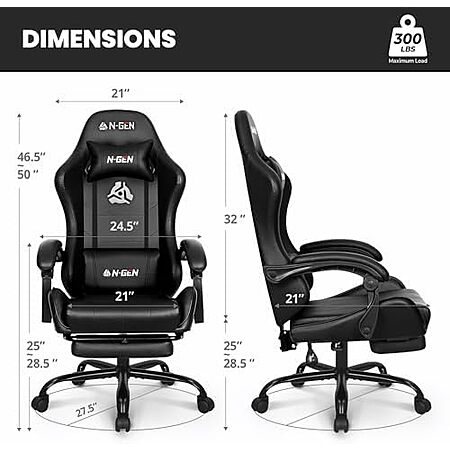 Amazon [amazon.com] has N-GEN GAMING High Back Gaming Chair w/ Footrest (Black) for $89.78.