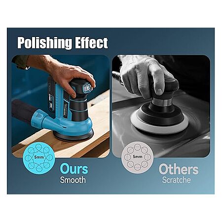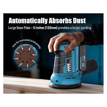 Tilswall 20V cordless orbital sander is equipped with a high-performance motor delivering 7,000–11,000 OPM variable speed. This palm sander tool offers precise control for different materials, from quick material removal to smooth finishing.