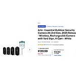 Arlo - Essential Outdoor Security Camera 2K (3rd Gen, 2025 Release) - Wireless, Rechargeable Camera with Yard Sign, 4-Cam - White $129.99 Bestbuy.com