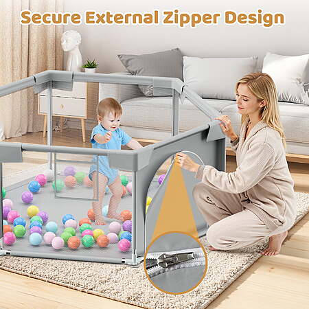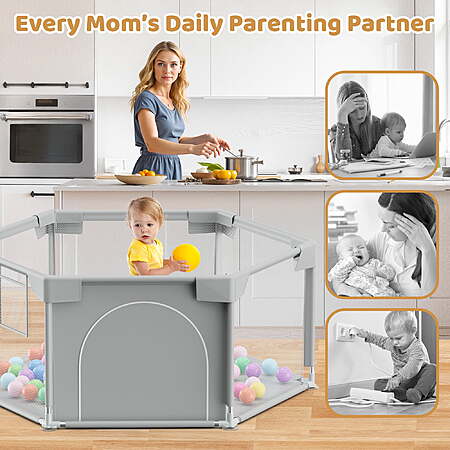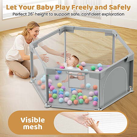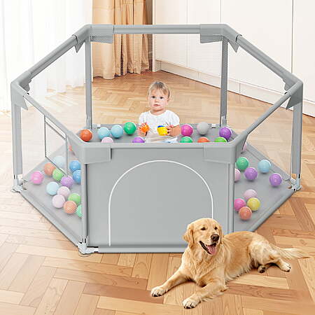 babyeap 50 Inch Hexagonal Baby Playpen, Light Gray or Pink - $29.99