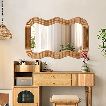 Luxenhome 25.75" x 39" Camila Wood Frame Wavy Rectangular Wall Mirror $134.99 + Free Shipping