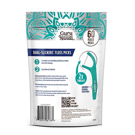 60-Count GuruNanda Dual Slickers Foldable Dental Floss Picks (Unflavored) $1.38 w/ S&S + Free Shipping w/ Prime or on $35+