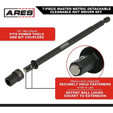 Amazon has ARES 27087 – Nut Driver Set – Metric Magnetic 7-Piece – Detachable and Cleanable – Radial 6 Point Drive Sockets Load on Flats - Removable Socket Ends for Easy Cleaning – Heavy Duty CR-V Steel for $4.99. Shipping is free for Prime members.