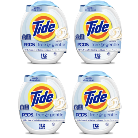 Select Accounts: 112-Count Tide PODS Free & Gentle Laundry Detergent Soap Pacs (Unscented) 4 for $55.87 w/ S&S + Free Shipping