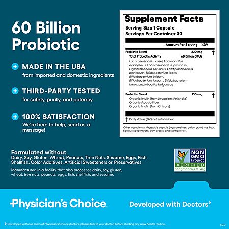 30-Count Physician's Choice Men's or Women's Organic Probiotics (60 Billion CFU) $11.98 w/ S&S + Free Shipping w/ Prime or on $35+