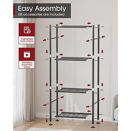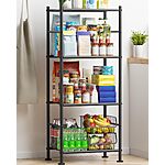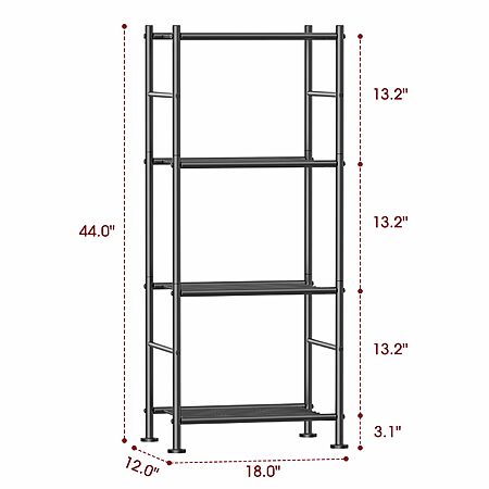 Sakugi Storage Shelving with Adjustable Leveling Feet, Space-Saving Shelves Organizer for Pantry, Laundry, Kitchen (18" x 12" x 44", Black)