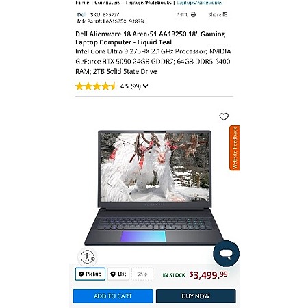 Dell Alienware 18 Area-51 AA18250 18" Gaming Laptop Computer - Liquid Teal $3499.99
