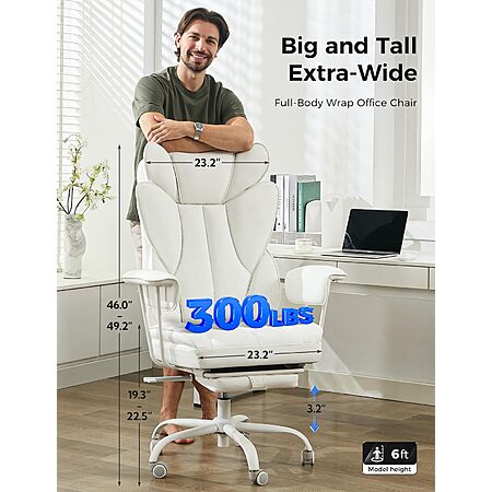 amseatec Big and Tall Office Desk Chair -Wide Ergonomic Executive with Footrest, High Back Lumbar Support Reclining Gaming Computer Chair for Heavy People (White) $139.99