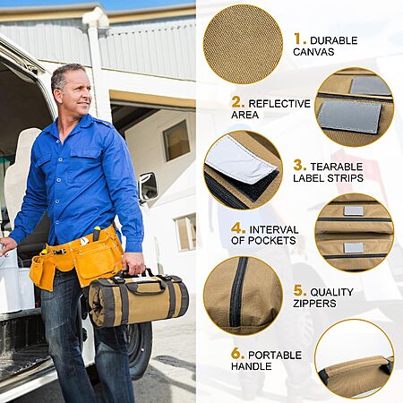 Vismix Heavy-Duty Tool Roll Bag Organizer w/ 6 Removable Labeled Pouches $11.19 + Free Shipping w/ Prime or on $35+