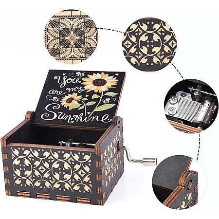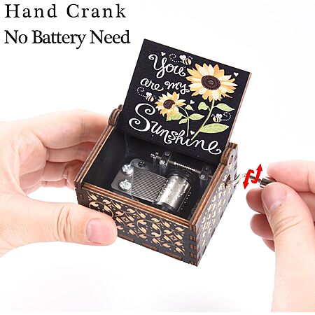 Laser Engraved Wooden Hand-Crank Music Box (You are My Sunshine) $2.69 + Free Shipping w/ Prime or $35+