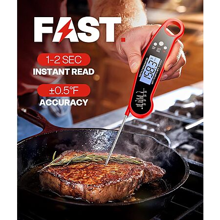 AYMDKI Digital Magnetic Instant Read Food/Meat Thermometer (Red) $4.01 + Free Shipping w/ Prime or on $35+
