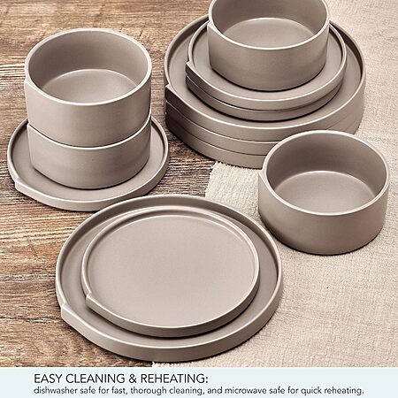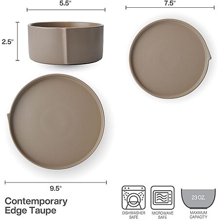 - CASUAL AND STYLISH: Featuring a unique shape and fresh taupe color, this dinnerware set adds an intriguing, modern touch to everyday meals or light entertaining, effortlessly blending style and practicality for any dining occasion.