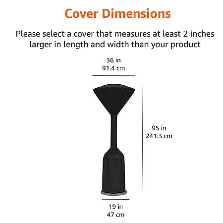 - Fits most stand-up patio heaters up to 95 inches high with a 34-inch dome diameter and a 17-inch round base diameter