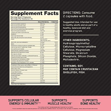60-Ct Optimum Nutrition Opti-Women Daily Multivitamin for Women, Immune Support Supplement w/ Iron (30 Day Supply) $12.99 w/ S&S+ Free S.H. w/ Prime or on $35+