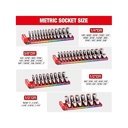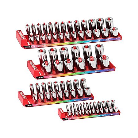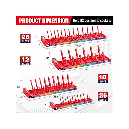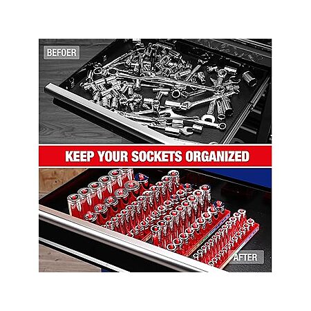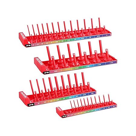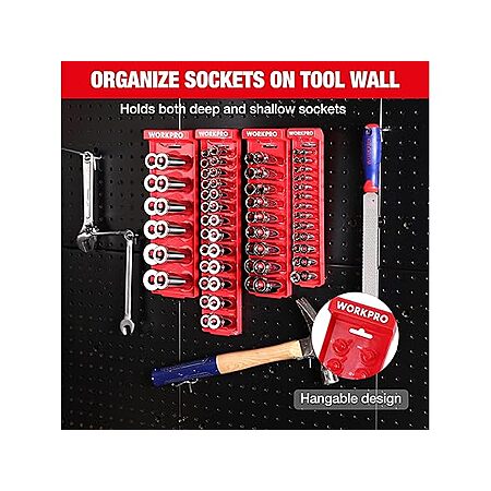WORKPRO Socket Organizer Set, 4PC Impact Socket Holder, 1/4", 3/8", 1/2" Drive SAE Socket Trays, Impact Socket Organizer for Tool Box Drawer, Socket Storage Holds 82 Pieces (Socket not Included)