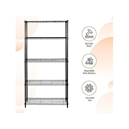 Amazon Basics 5-Shelf Steel Wire Rack Storage, 36" L x 14" W x 72" H, Black at Woot! $35 at Woot!