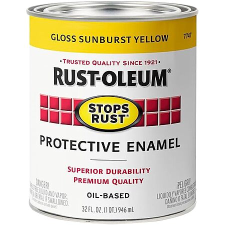 $17.12 | 2-Pack 32-Oz Rust-Oleum Stops Rust Brush On Paint (Gloss Sunburst Yellow) at Amazon