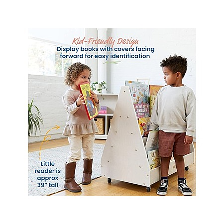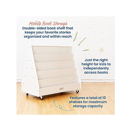 - Reading Within Reach: Mobile wooden bookshelf has 10 wide slots at a kid-friendly height making it easy for toddlers and kids to reach their favorite books in a bedroom, playroom, or classroom