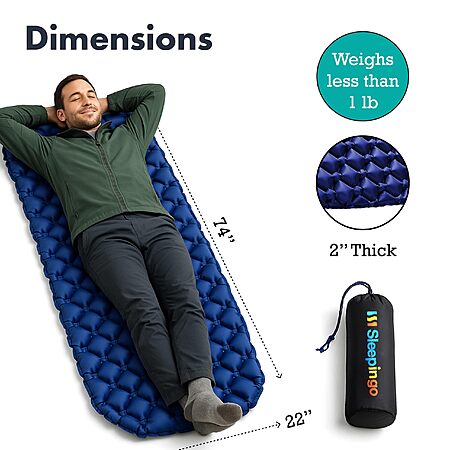 Sleepingo via Amazon.com has Sleepingo Ultralight Inflatable Sleeping Mat – Compact, Tear-Resistant Air Mattress for Camping & Backpacking (Blue/Green) on sale for $16.