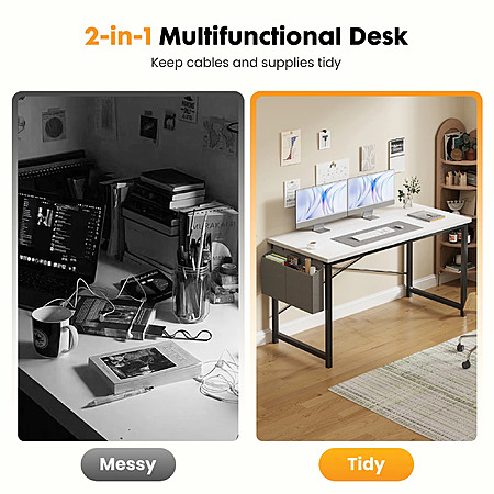 - 【Practical Side Storage Bag】Equipped with a detachable cloth storage bag, it can easily store notebooks, stationery and small accessories, making the desktop suitable for both studying and working, keeping it neat and organized.