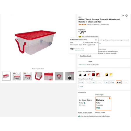 40 Gallon storage totes on clearance at Home Depot for $10