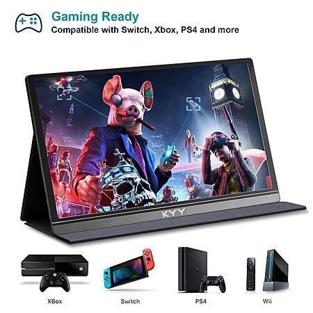 KYY Portable Monitor 15.6inch 1080P FHD USB-C, HDMI Computer Display HDR IPS Gaming Monitor w/Premium Smart Cover & Screen Protector, Speakers $66.47